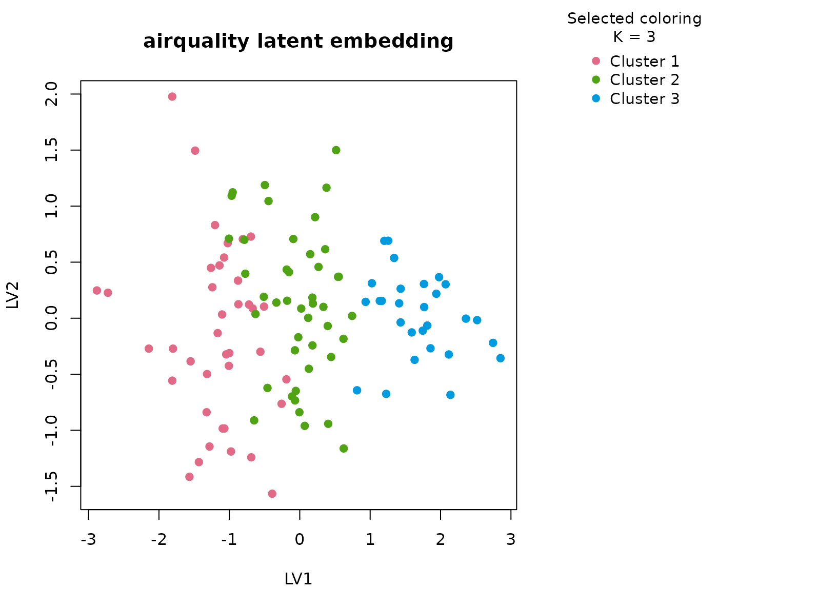 plot_embedding(fit_aq, color_by = "selected", main = "airquality latent embedding")