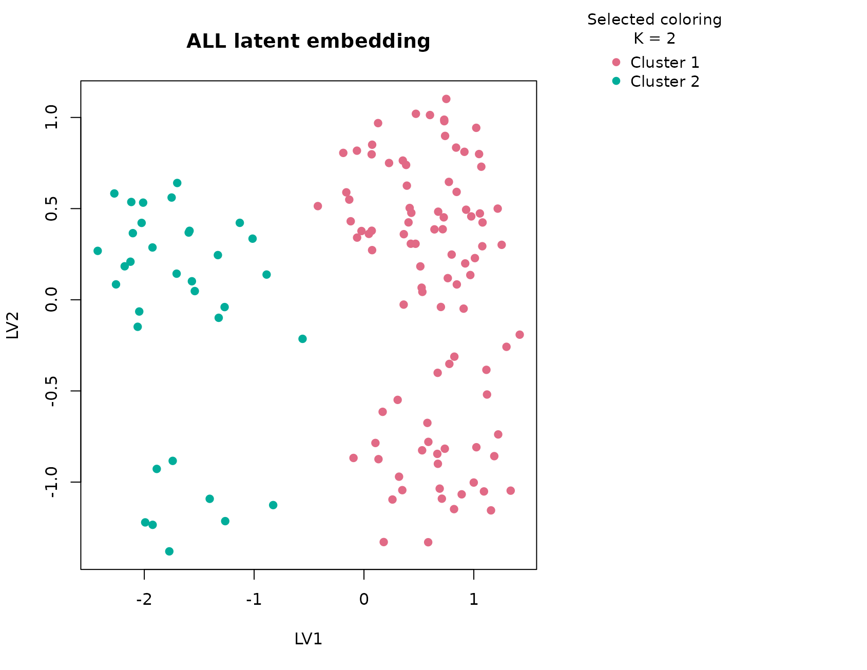 plot_embedding(fit_all, color_by = "selected", main = "ALL latent embedding")