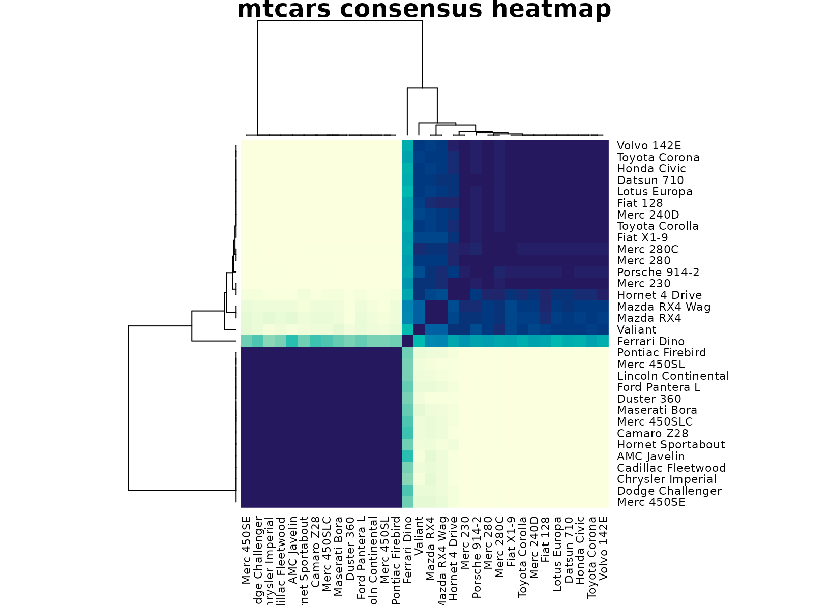 plot_consensus_heatmap(fit_cars, main = "mtcars consensus heatmap")