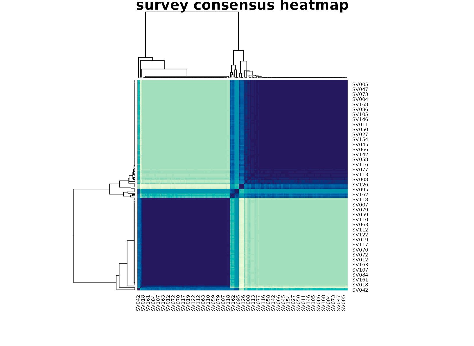 plot_consensus_heatmap(fit_survey, main = "survey consensus heatmap")